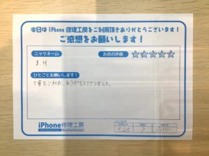 【iPhone7のバッテリー交換でお越しのS.H様からの評価】