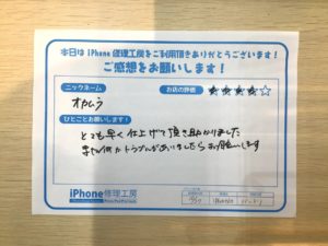 【iPhone6sのバッテリー交換でお越しのオカムラ様からの評価】