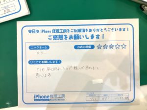【iPhone8Pのバッテリー交換でお越しのスター様からの評価】