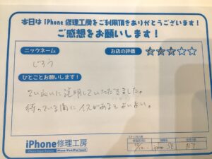 【iPhoneSEのバッテリー交換でお越しのじろう様からの声】