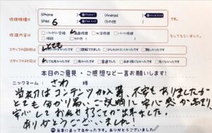 スマホ修理工房ジョイナステラス二俣川店・iPad6の画面交換でお越しのお客様からの口コミ