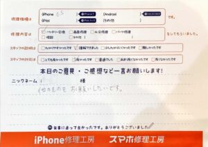 スマホ修理工房ジョイナステラス二俣川店/iPhone6s バッテリー交換でお越しのお客様から頂いたお言葉