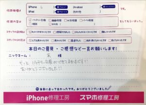 【iPhone6 バッテリー交換でご来店のあ様から頂いたコメント】