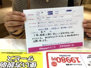【iPhone8 バッテリー交換でご来店の花火様から頂いた評価】