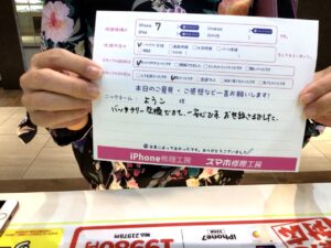 【iPhone7 バッテリー交換でご来店のようこ様から頂いたコメント】