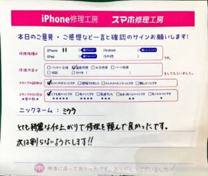 スマホ修理工房ジョイナステラス二俣川店・iPhone11の画面修理でお越しのお客様からいただいたお言葉